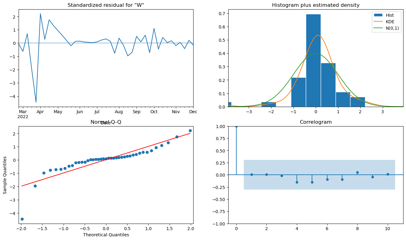 plot_diagnotics 함수의 결과를 보더라도 1편에서보다 괜찮아보이는 것 같다. 물론 초반부의 저 큰 잔차는 어쩔 수 없는 것 같지만..